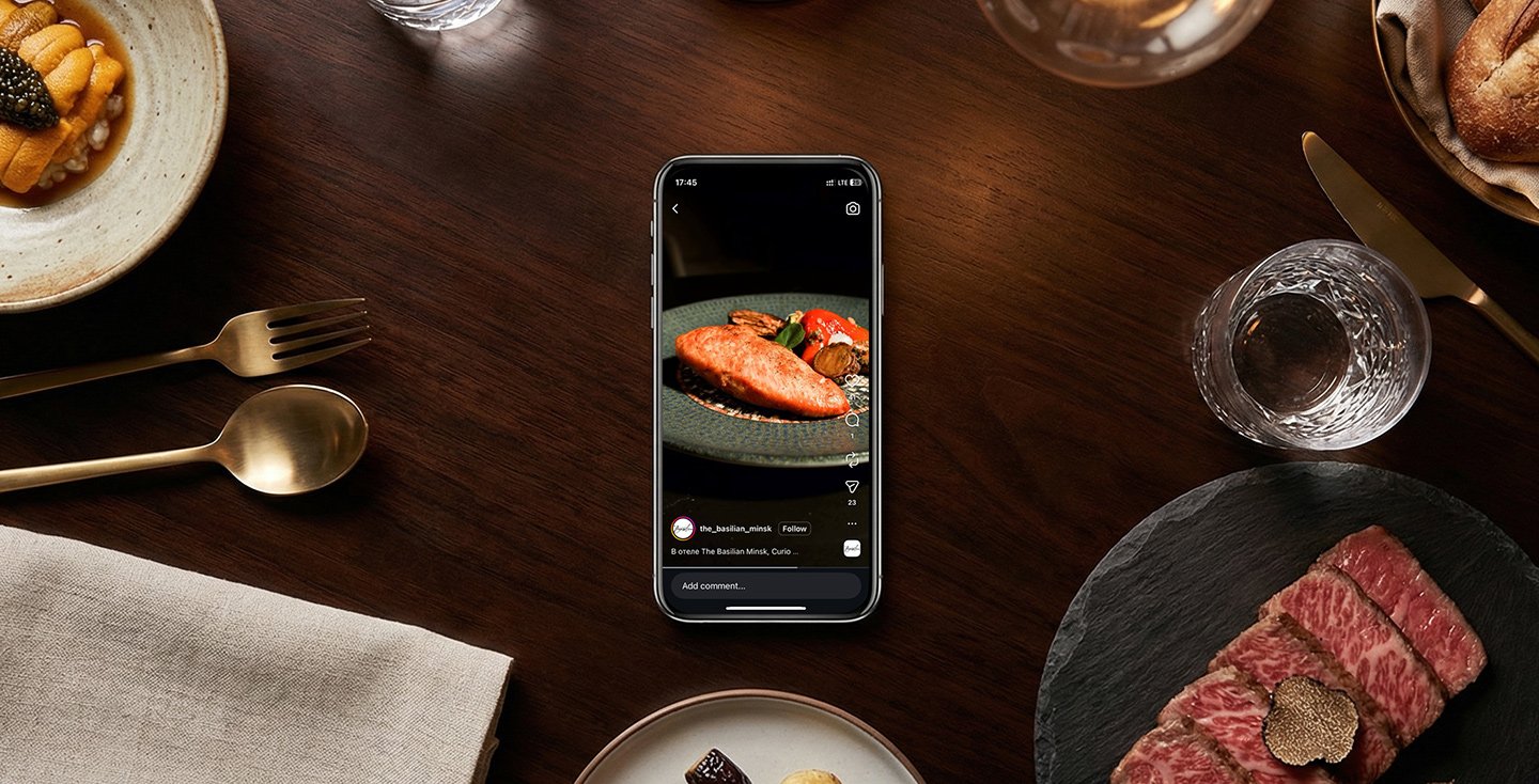 Визуал должен соответствовать уровню международного бренда, быть сдержанным, чистым и премиальным, без перегруженности и лишней «инстаграмности». При этом он обязан вызывать аппетит и работать на привлечение гостей.