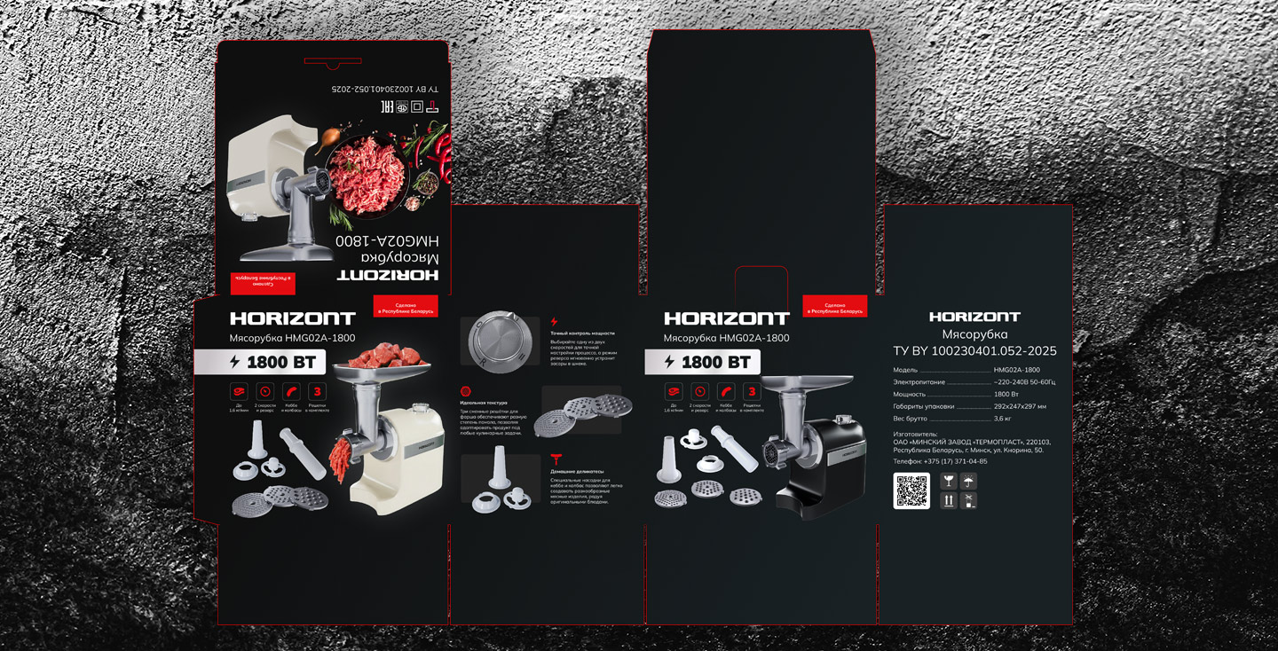 Разработка дизайна упаковки для мясорубок HORIZONT