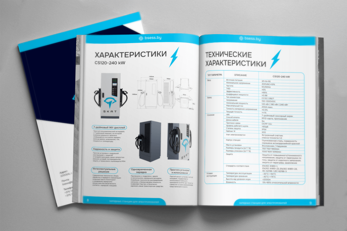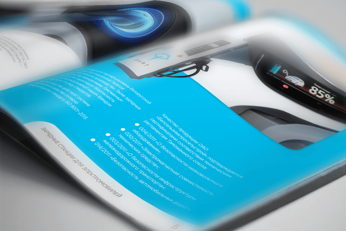 Разработали обновленный каталог зарядных станций для электромобилей. Дизайн разрабатывали в рамках существующего у компании брендбука, в фирменных цветах и с применением фирменных шрифтов и элементов. Каталог создавался на двух языках: английский и русский, переводом также занимались специалисты Highlight Media. У нас можно заказать разработку каталогов любой сложности и для любых задач. Мы быстро найдем общий язык, поймем ваши цели и пожелания и сразу приступим к работе, чтобы уложиться в отведенные сроки.