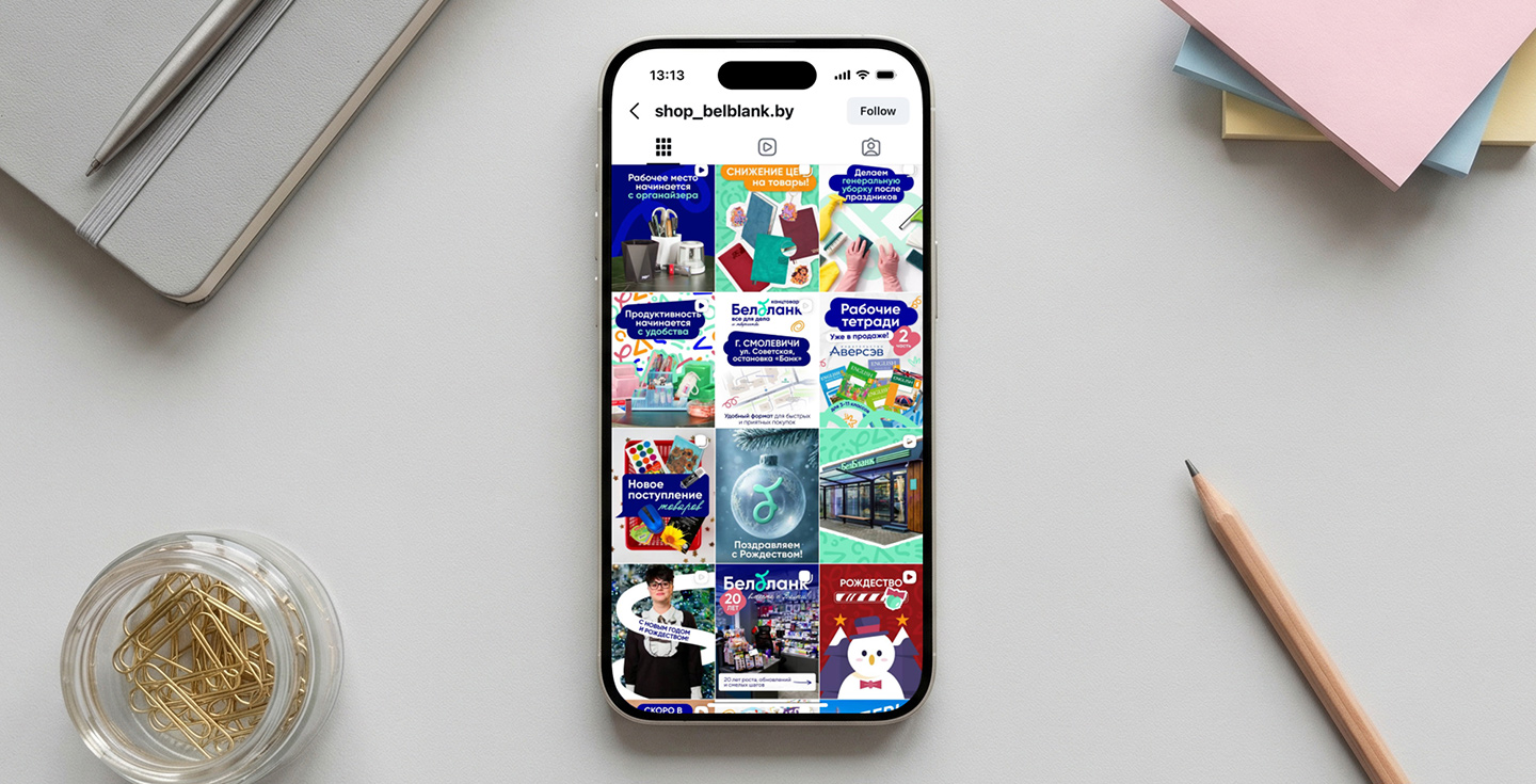 Для сети «БелБланк» была разработана стратегия ведения Инстаграм в Минске и других городах Беларуси. Основная задача заключалась в том, чтобы показать широкий ассортимент канцелярских товаров, регулярно информировать аудиторию о новинках и акциях, а также формировать доверие к бренду.